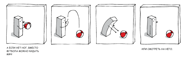 А вот этот комикс мне понравился - более философский, что ли. И все просто и актуально, особенно в преддверии Евро-2012. Главное, что автор не зациклился на Круглой и Квадратной, а выдумал кое-что новое: про грибок и мячик  Grin Предлагаю автору еще идеи  - про иголку с ниткой, или про веревку и мыло. Или про Лелека и Болека (хотя нет - это было). Ну тогда про Тугрек и Драный Торшер.